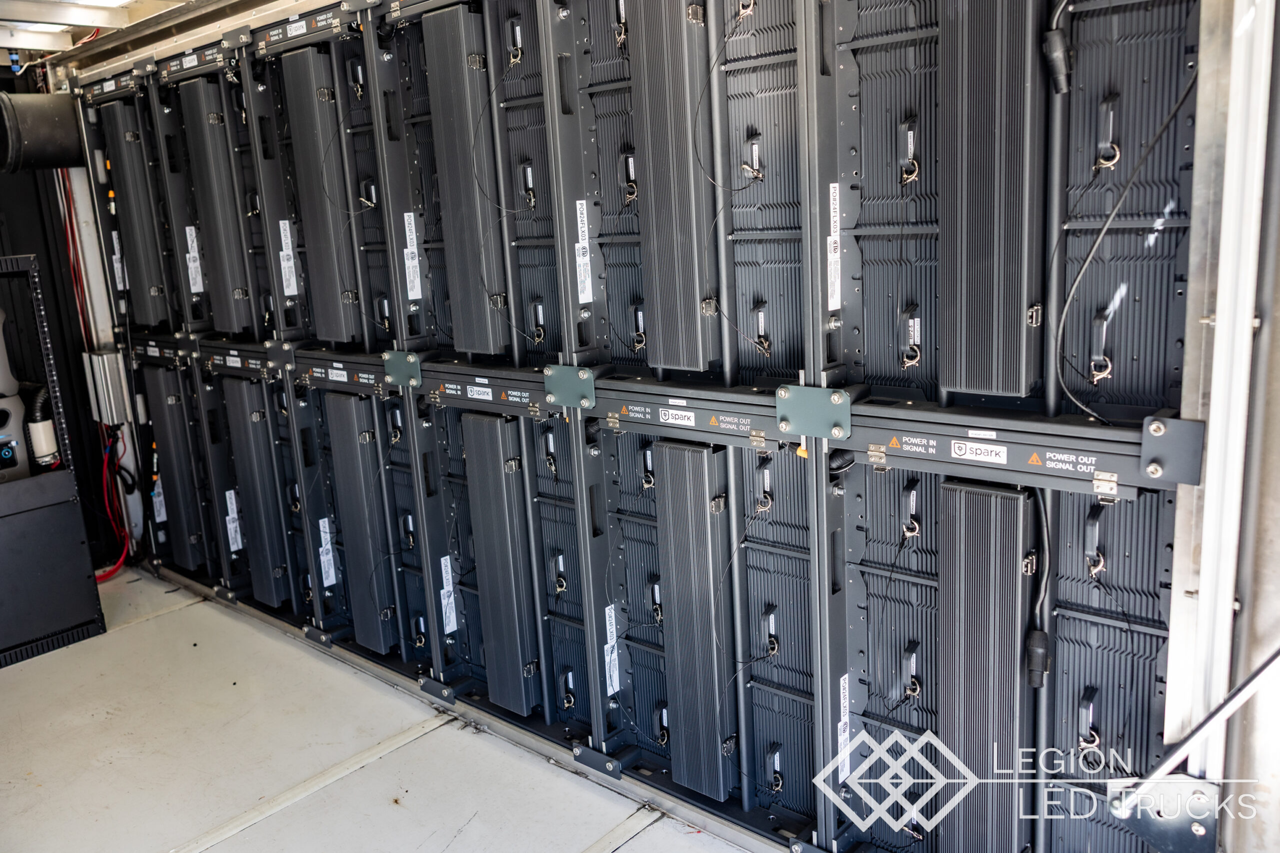- Screens: Sides 5′ x 10′ (each), Rear 6’7″ x 4’11”; >5500 nits daylight bright.