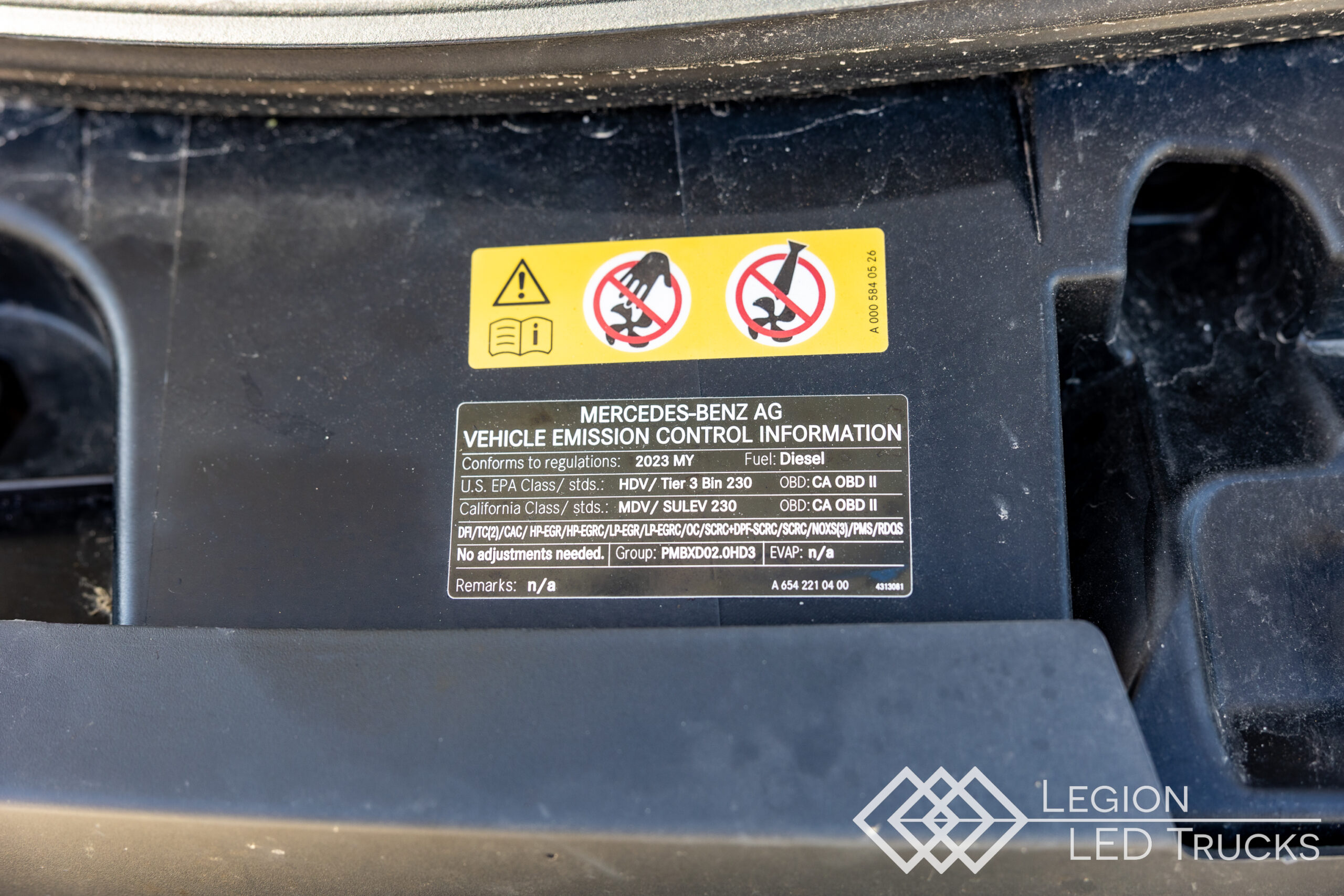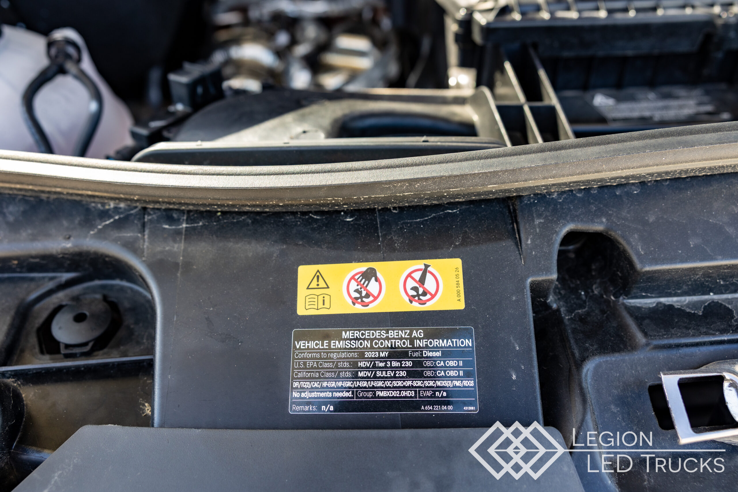 - Chassis: 2023 Mercedes-Benz Sprinter 3500 diesel (RWD, 9-speed automatic)
